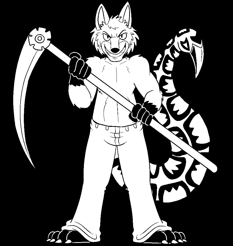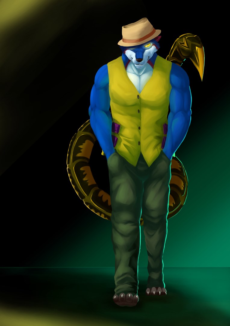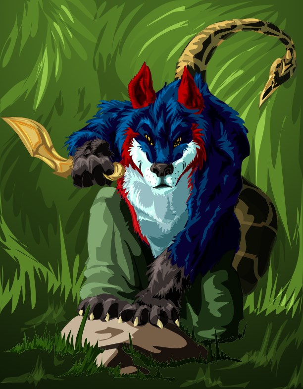 A multicolored tribal timberwolf with a prehensile scorpion tail